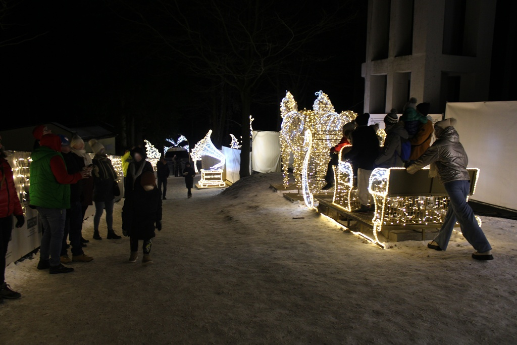 Jest gramofon, zabytkowy samochód, sanie z zaprzęgiem konnym, altany czy fontanna. Wszystko oświetlone lampkami, które zachęcają do wieczornych spacerów i robienia nocnych zdjęć.