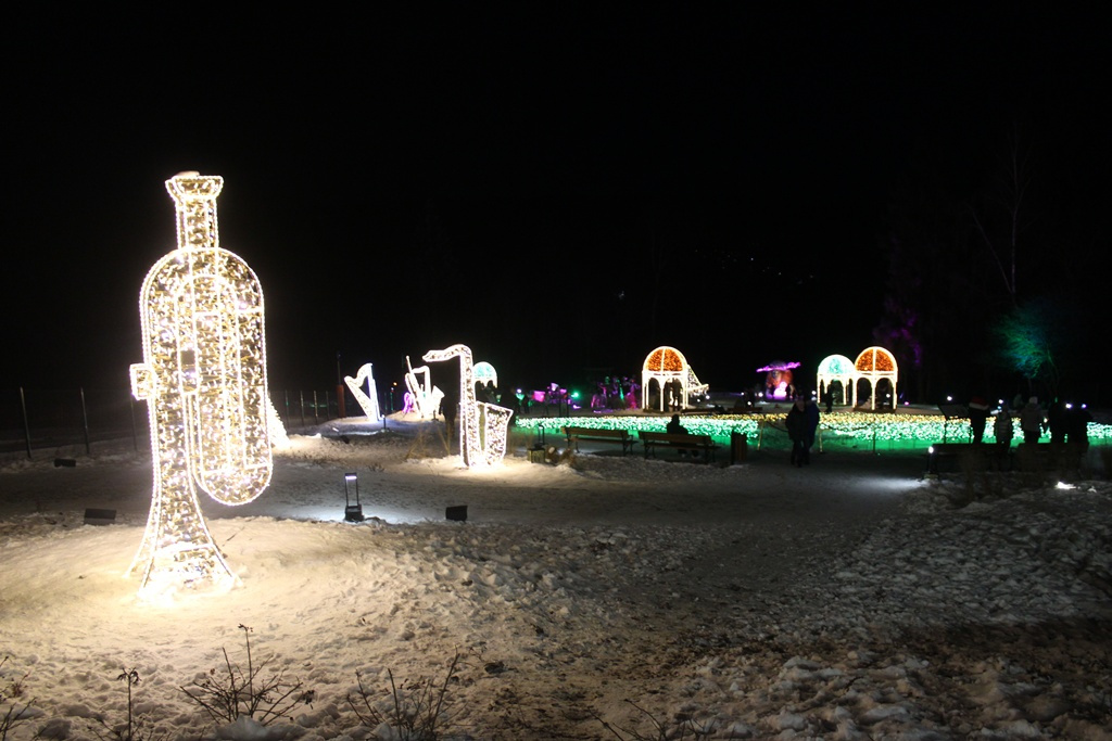 Jest gramofon, zabytkowy samochód, sanie z zaprzęgiem konnym, altany czy fontanna. Wszystko oświetlone lampkami, które zachęcają do wieczornych spacerów i robienia nocnych zdjęć.