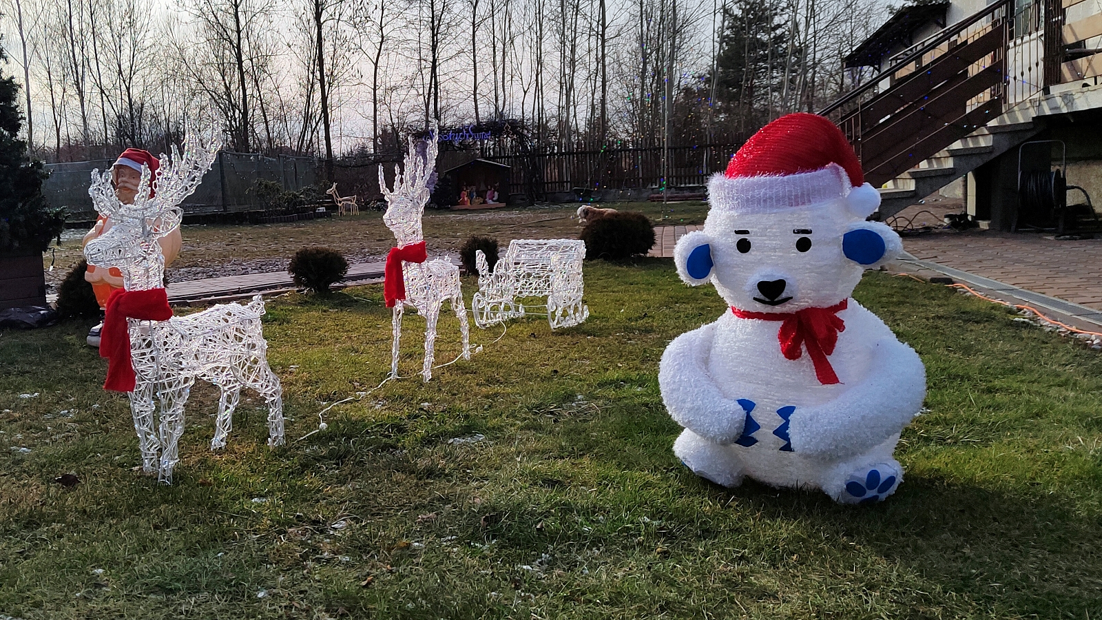 -Są tutaj np. renifery, anioł, trzy Mikołaje, cukrowa laska, wejście jest świąteczne, są świece, świecące w nocy. Najważniejsza jest szopka bożonarodzeniowa, to główny symbol tych świąt. Szopka jest wyjątkowa, pochodzi z Ameryki. Ma swoje lata, dużo przeszła, ale do tej pory każda z figur się świeci. Jezusek się nie świeci, ale podświetlany jest m.in. anioł, Matka Boża, trzej Królowie.