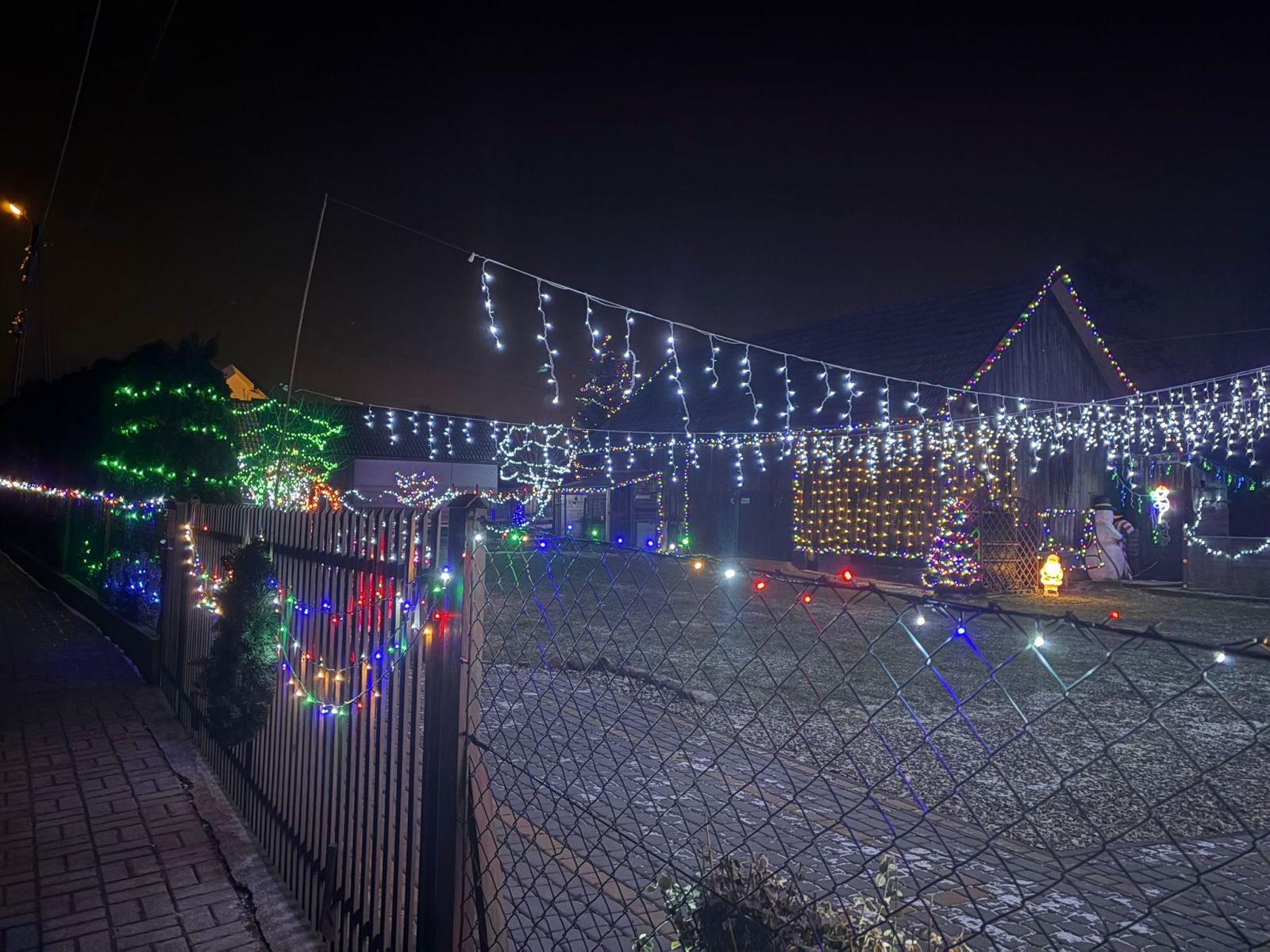 Na sąsiadujących ze sobą posesjach można znaleźć szerokie kurtyny świetlne, bramy, liczne figury oraz świecącą po zmroku szopkę bożonarodzeniową. Jak mówi 16-latek, podświetlana szopka to najważniejszy element całej instalacji.