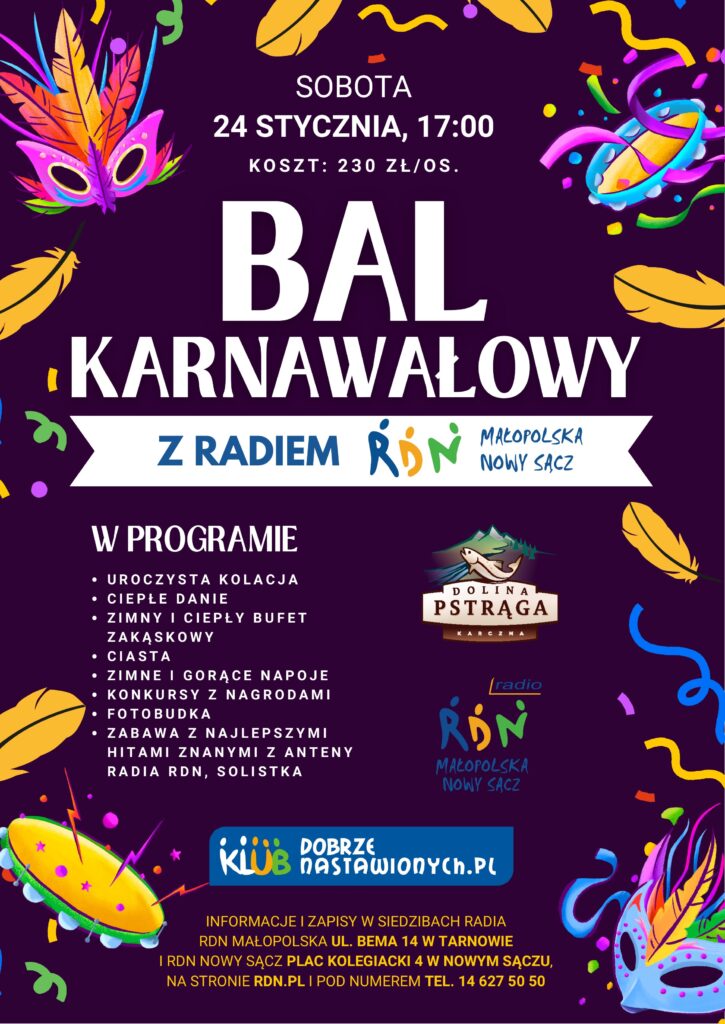 Bal odbędzie się 24 stycznia w Karczmie Dolina Pstrąga w Machowej. Początek o godzinie 17.00. Do udziału zaproszeni są nie tylko członkowie Klubu Dobrze Nastawionych – wydarzenie ma charakter otwarty. Organizatorzy przewidują także transport z Tarnowa i Nowego Sącza.