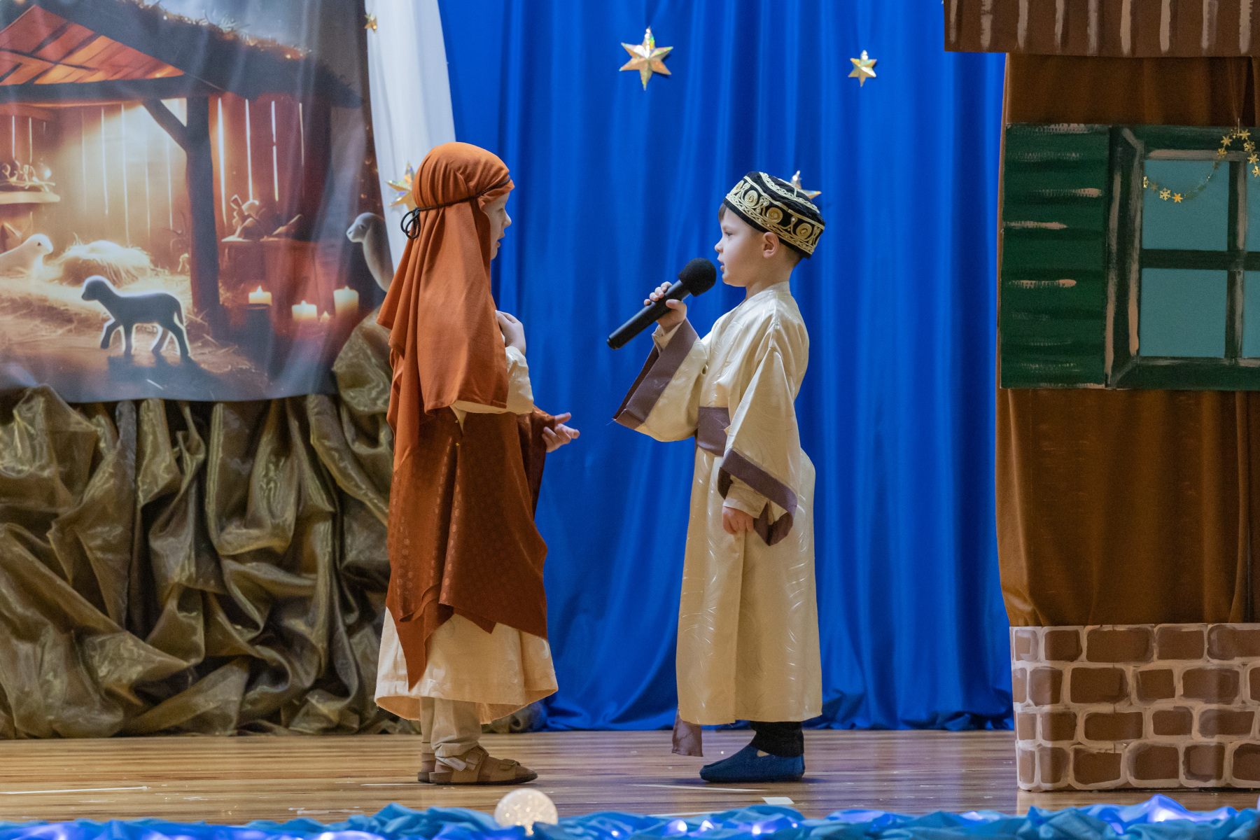 Na scenie zobaczyć można było opowiadające biblijną historię postaci Dzieciątka Jezus, Maryi czy Józefa, ale też grupy aniołków i pastuszków wykonujących barwne choreografie.