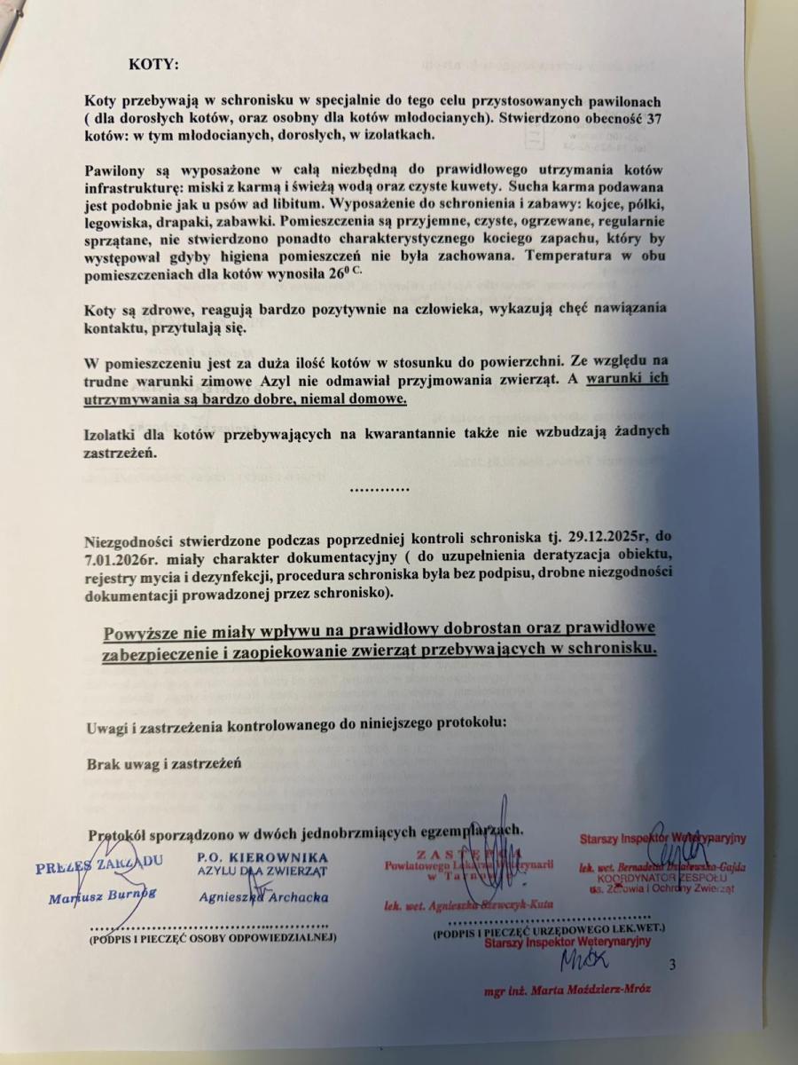 Aktualizacja: Tarnowski Azyl dla Zwierząt opublikował protokół pokontrolny. Treść dokumentu zamieszczamy w galerii poniżej.