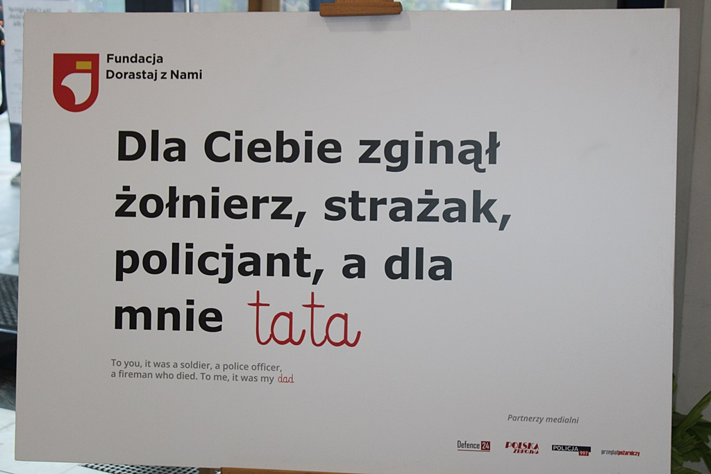 Wystawę „Dla Ciebie zginął żołnierz, strażak, policjant, a dla mnie tata” można oglądać w Wyższej Szkole Biznesu w Nowym Sączu przez 2 tygodnie.