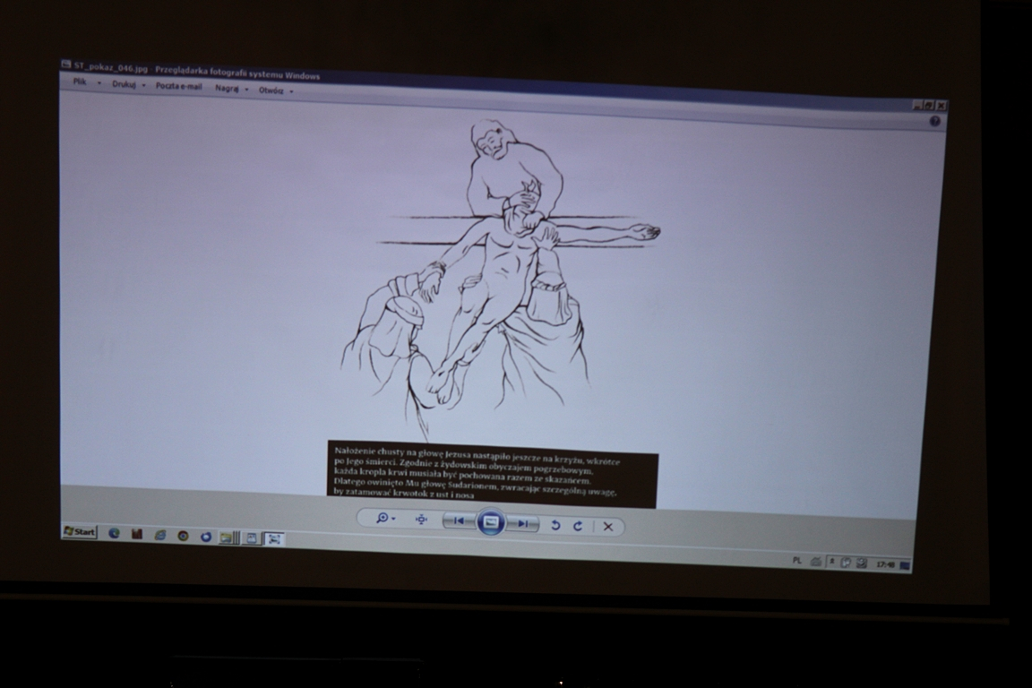 Podczas wykładu można było dowiedzieć się również o innych relikwiach takich jak chusta z Oviedo, czy tunika z Argenteuil.