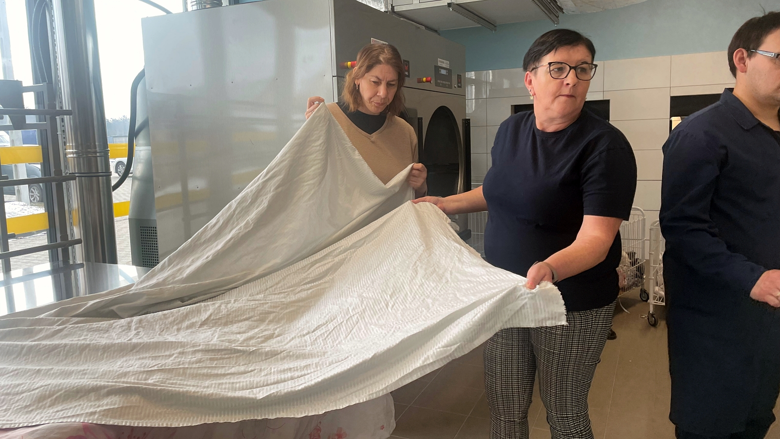 – Głównie pierzemy, maglujemy, składamy wszystko na regały – mówi inny z pracowników pralni, pan Dominik.