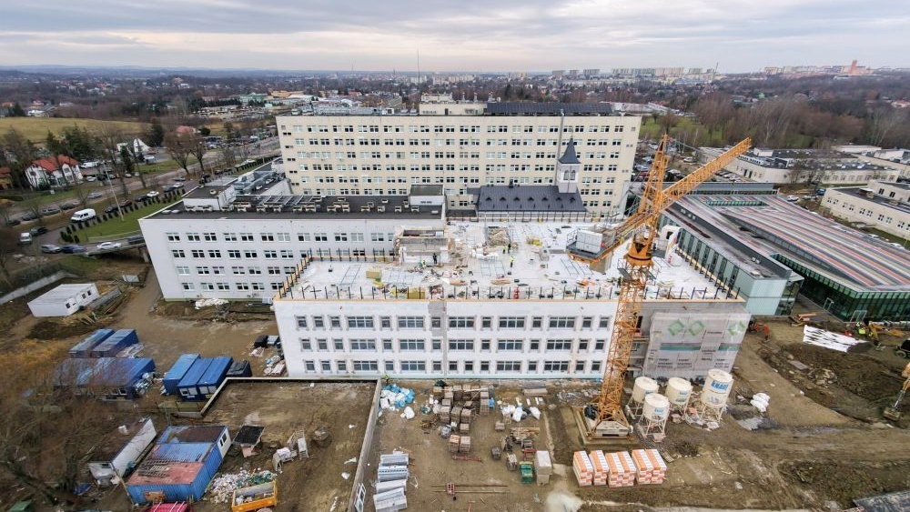 Krótsze kolejki na zabiegi onkologiczne, nowoczesny sprzęt i mniej inwazyjne operacje – to realne korzyści, jakie przyniesie pacjentom nowy Centralny Blok Operacyjny Szpitala Wojewódzkiego im. Św. Łukasza w Tarnowie. Budowa weszła w kolejny, kluczowy etap: konstrukcja budynku została zamknięta, a obecnie trwają intensywne prace wykończeniowe i montaż nowoczesnej infrastruktury medycznej.
