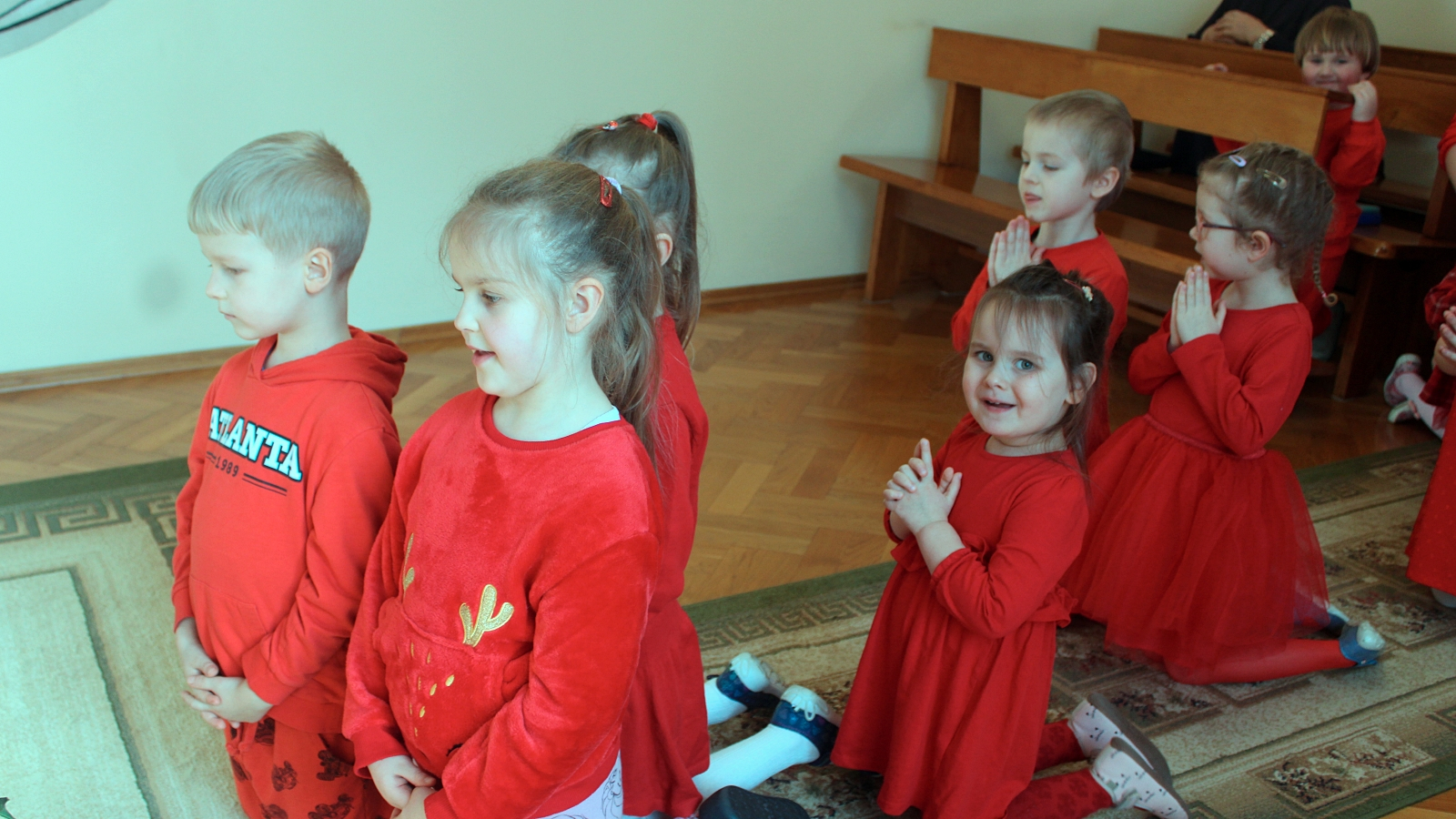 Była wspólna modlitwa w kaplicy. W sali dzieci zatańczyły i zaśpiewały dla Pana Jezusa.