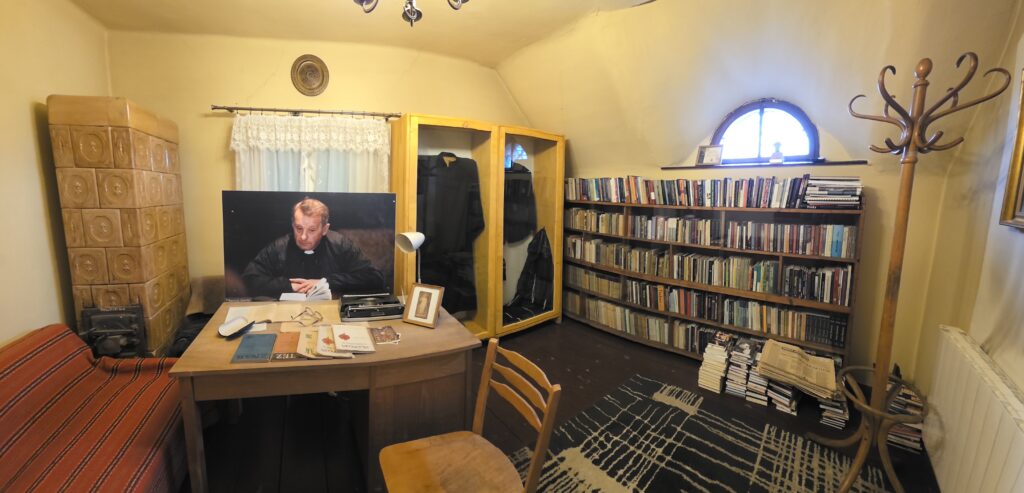 – Przede wszystkim duże plansze obrazujące postać księdza profesora, ale jest też zrekonstruowana bacówka księdza profesora i w tej bacówce jest ekran, gdzie cały czas przemawia bohater wystawy, ale są też różne pamiątki osobiste