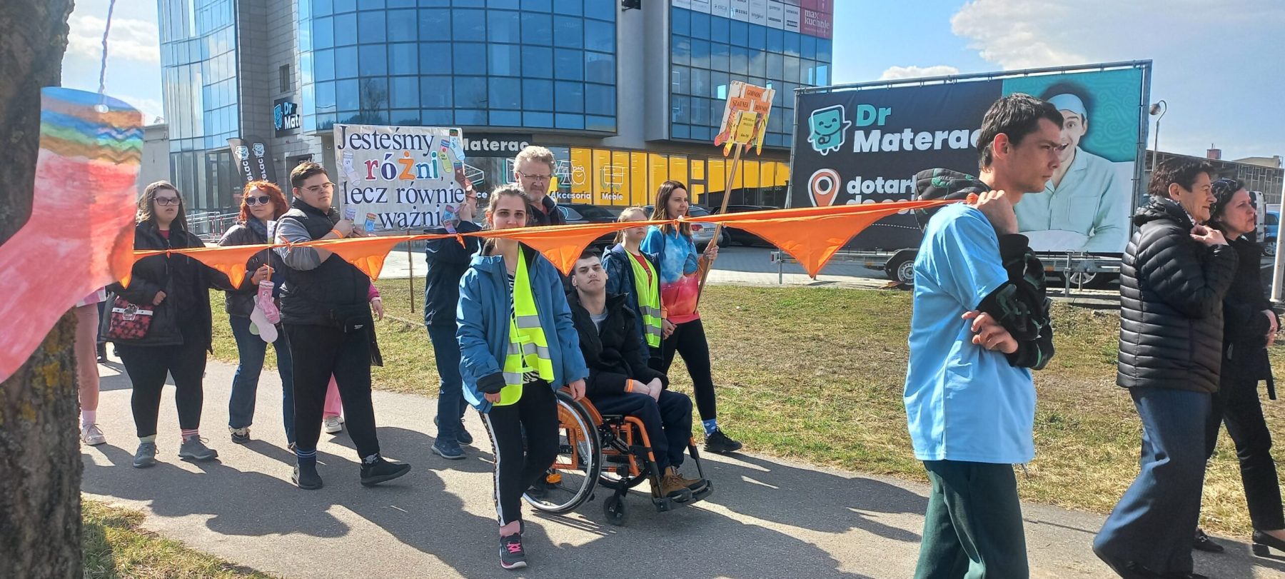 W Nowym Sączu zrobiło się więc kolorowo, za sprawą przygotowanych przez uczestników marszu specjalnych rysunków nawiązujących do dzisiejszego dnia, o których opowiadali mi uczestnicy Warsztatów Terapii Zajęciowych MADA.