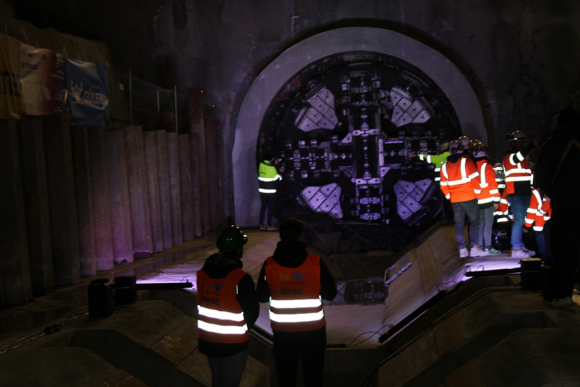 – To jest tunel ewakuacyjny, towarzyszący do tunelu kolejowego. Ze względu na to, że mamy jeden tunel kolejowy, wymagania bezpieczeństwa mówią o tym, że należy zapewnić drogi ewakuacji  i stąd obok niego powstał tunel ewakuacyjny. Maszyna TBM przyjechała z Chin, jest to maszyna, która tak naprawdę w tych warunkach geologicznych i hydrologicznych jest w stanie pracować. Chodzi tutaj szczególnie o ciśnienie wody. Maszyna ma 170 metrów, waży 600 ton i jej średnica to jest 4,83 dokładnie.