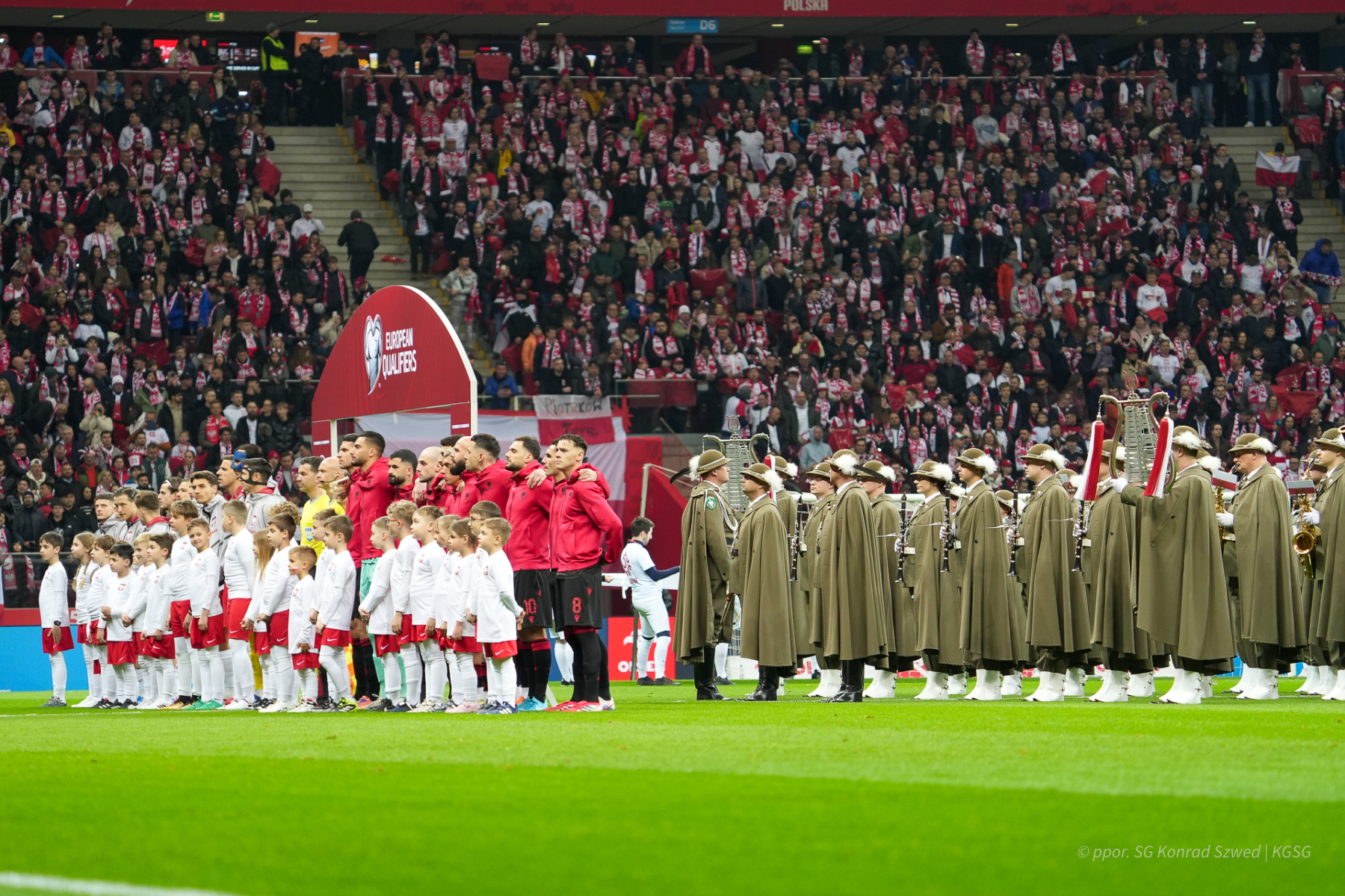 To był wyjątkowy moment dla Orkiestry Reprezentacyjnej Straży Granicznej z Nowego Sącza. Pogranicznicy zagrali hymny państwowe przed meczem Polska – Albania w Warszawie. W półfinałowym barażu o mistrzostwa świata biało-czerwoni wygrali 2:1 po golach Roberta Lewandowskiego i Piotra Zielińskiego.