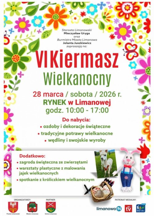 W sobotę (28.03) na rynku w Limanowej odbędzie się VI Kiermasz Wielkanocny. Podczas tegorocznej edycji na stoiskach wystawców będzie można znaleźć potrawy i produkty do tradycyjnej święconki, ręcznie wykonane ozdoby, dekoracje, a także rękodzieło. Będzie można odwiedzić także świąteczną zagrodę ze zwierzętami.