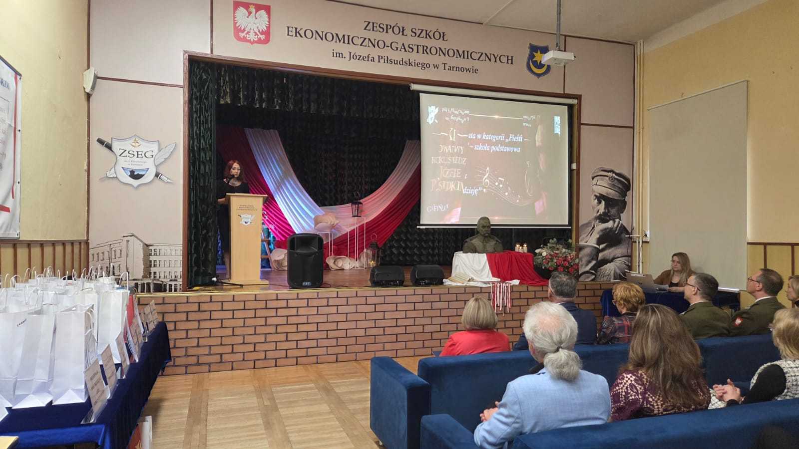 Postać Józefa Piłsudskiego uczy młodzież z powiatu tarnowskiego patriotyzmu. Dzisiaj (27.03) w Zespole Szkół Ekonomiczno-Gastronomicznych w Tarnowie odbyła się uroczysta gala, podczas której zaprezentowali się nagrodzeni uczestnicy.