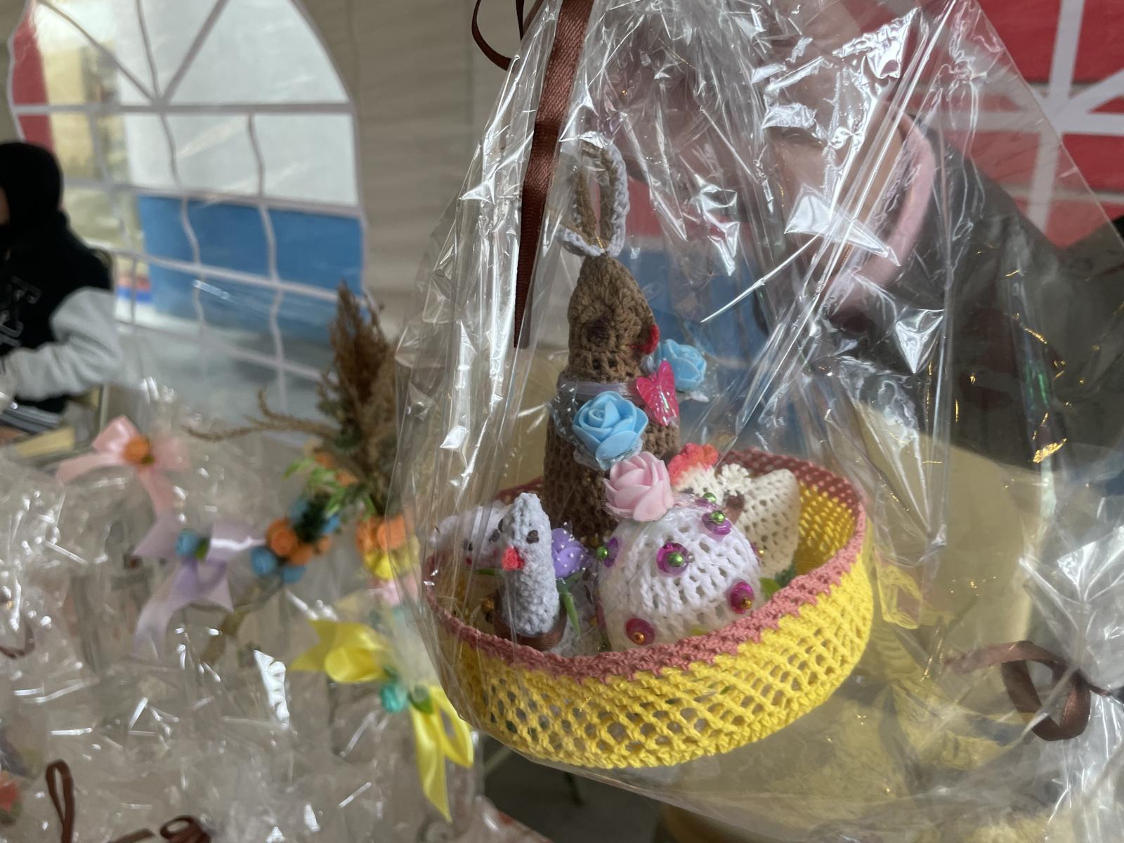 Wzrok przykuwały także wielkanocne koszyczki. Można było znaleźć nie tylko te tradycyjne, plecione, ale też krochmalone. Takie można było znaleźć na stoisku Beaty Starzyk z okolic Żabna, która ozdoby świąteczne tworzy przy pomocy szydełka.