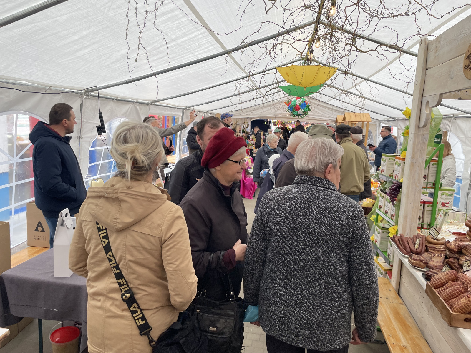 Dużym zainteresowaniem cieszyły się kolorowe pisanki i robione na szydełku kapturki na jajka w kształcie kurek czy pisklaków, które wylądują w koszyczku wielkanocnym. Bardzo długie kolejki ustawiały się także do wędlin. Odwiedzającym przygrywała Kapela Podwórkowa ‘Gulony’ z Zakliczyna.