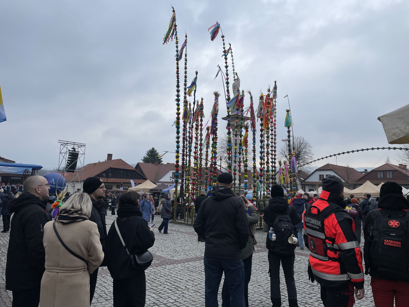 W czasie stawiania palm, lipnicki rynek wypełnił się widzami. To zarówno lokalni mieszkańcy, jak i turyści, którzy przyjechali do Lipnicy Murowanej, żeby zobaczyć, jak na ich oczach dzieje się tradycja.