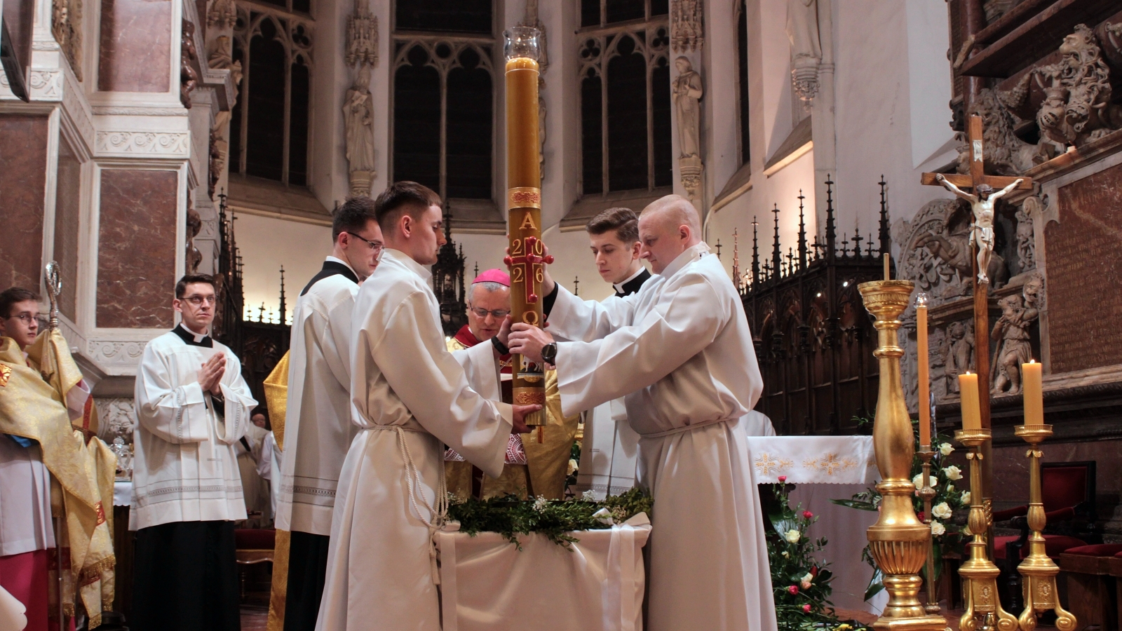 -„Jezus Chrystus umarł i zmartwychwstał” – krótkie zdanie. Zdanie wielkiej wagi, rzeczywistość naszego zbawienia. Przez chrzest każdy z nas został zanurzony w męce, śmierci i zmartwychwstaniu Pana Jezusa. Stąd nasza wielka godność. Godność Dziecka Bożego, ucznia Chrystusa, chrześcijanina. Każdego z was zapraszam, byście pomyśleli o swoich rodzicach, o babci, dziadku, proboszczach, których znaliście, być może o wikariuszu czy katechecie. Myśmy nie wzięli się znikąd. To właśnie nasi rodzice, proboszczowie, katecheci, zanurzeni w chrzcie, przekazali nam wiarę. Ufamy, że zrobili to najlepiej, jak potrafili. Z naszej strony powinna być ogromna wdzięczność, że dzięki ich wierze, my dzisiaj możemy przeżywać prawdy o tym, że Jezus Chrystus umarł i zmartwychwstał, że jest naszym Zbawicielem.