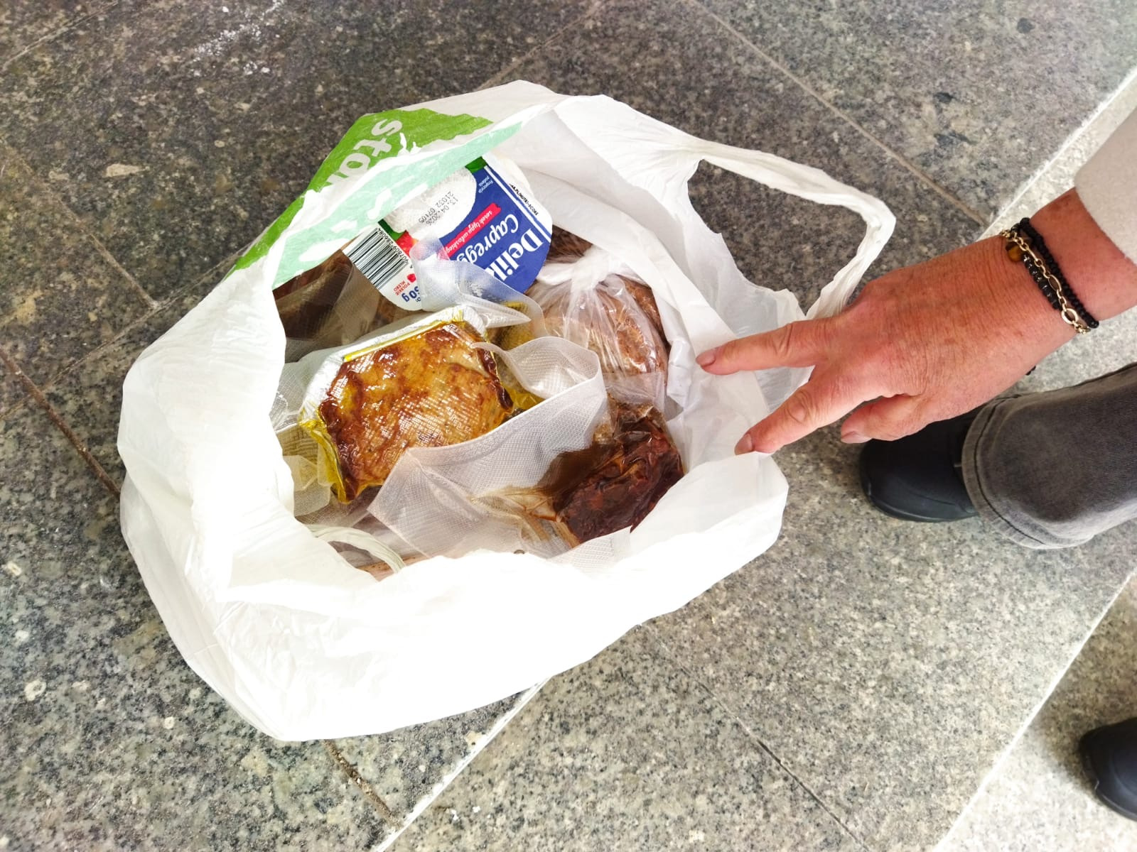 Ludzie przynoszą tutaj żywność, która znika bardzo szybko. Pani Alicja przekazała potrzebującym m.in. chleb i wędlinę.