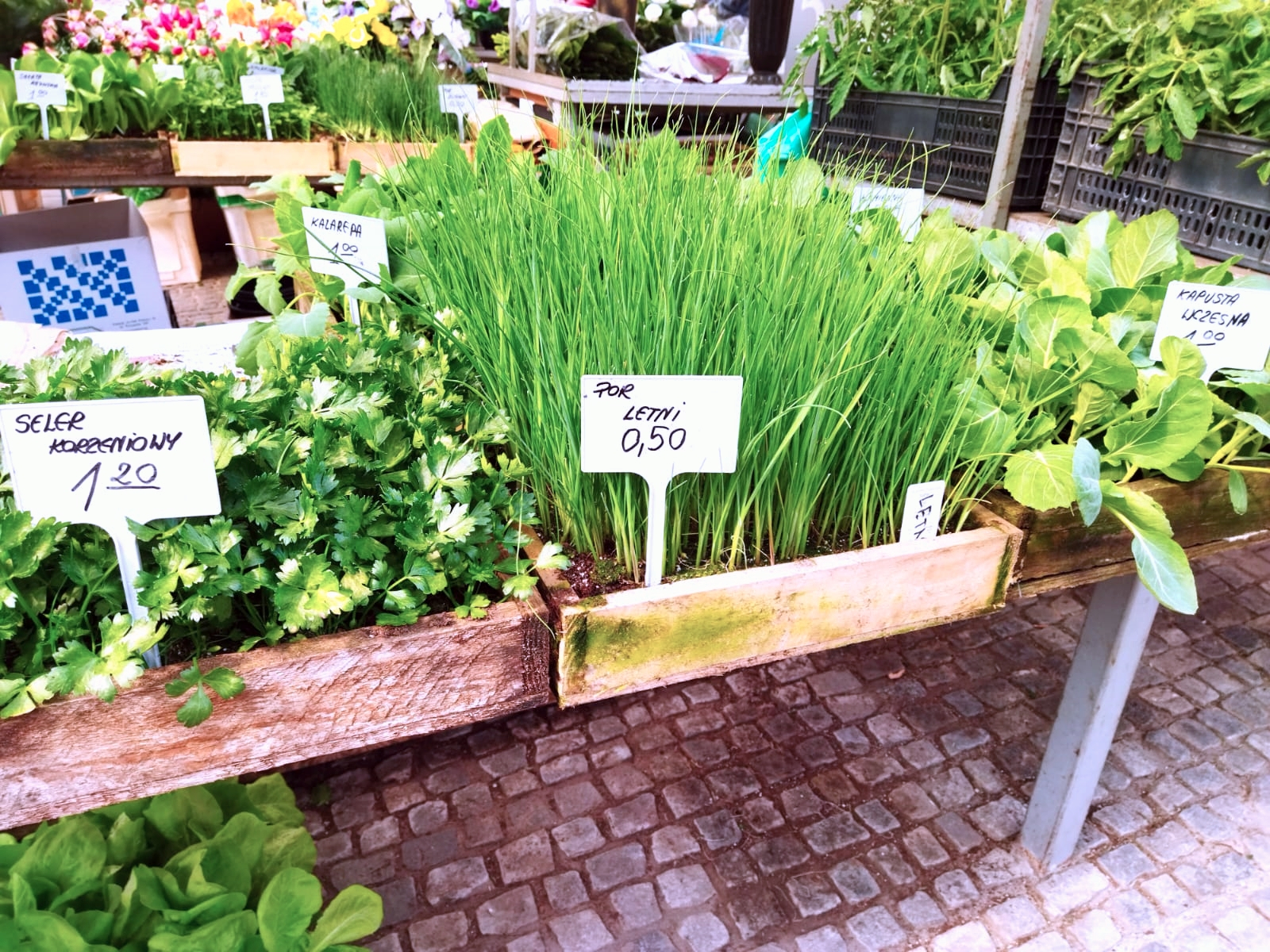 – Na stoisku mam sałatki, selery, pietruszkę, kapustę, ogórki, pomidory. Mało dziś sprzedałam. Ludzie jeszcze nie kupują, obawiają się, że będzie zimno. Nasze rośliny nie podrożały, ceny jak w tamtym roku, mimo że ziemia, nasiona bardzo poszły w górę. Ja sadzę nasiona od lutego, później trzeba przepikować rośliny, żeby powstały takie rozsady.