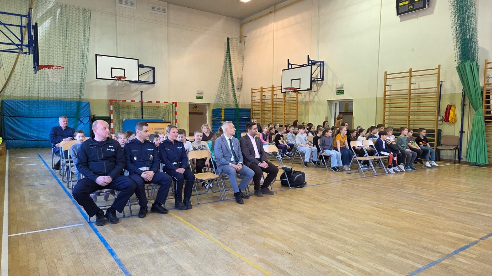 Dzieci z klas 1-3 rozmawiały z policjantami o tym jak zachowywać się w drodze do szkoły.