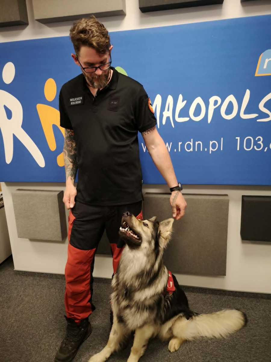 Wojciech Kuliński z Małopolskiej Cywilnej Grupy Poszukiwawczo-Ratowniczej, współpracuje z psem Ipu – owczarkiem staroniemieckim. Duet specjalizuje się w poszukiwaniu osób zaginionych w terenach leśnych.