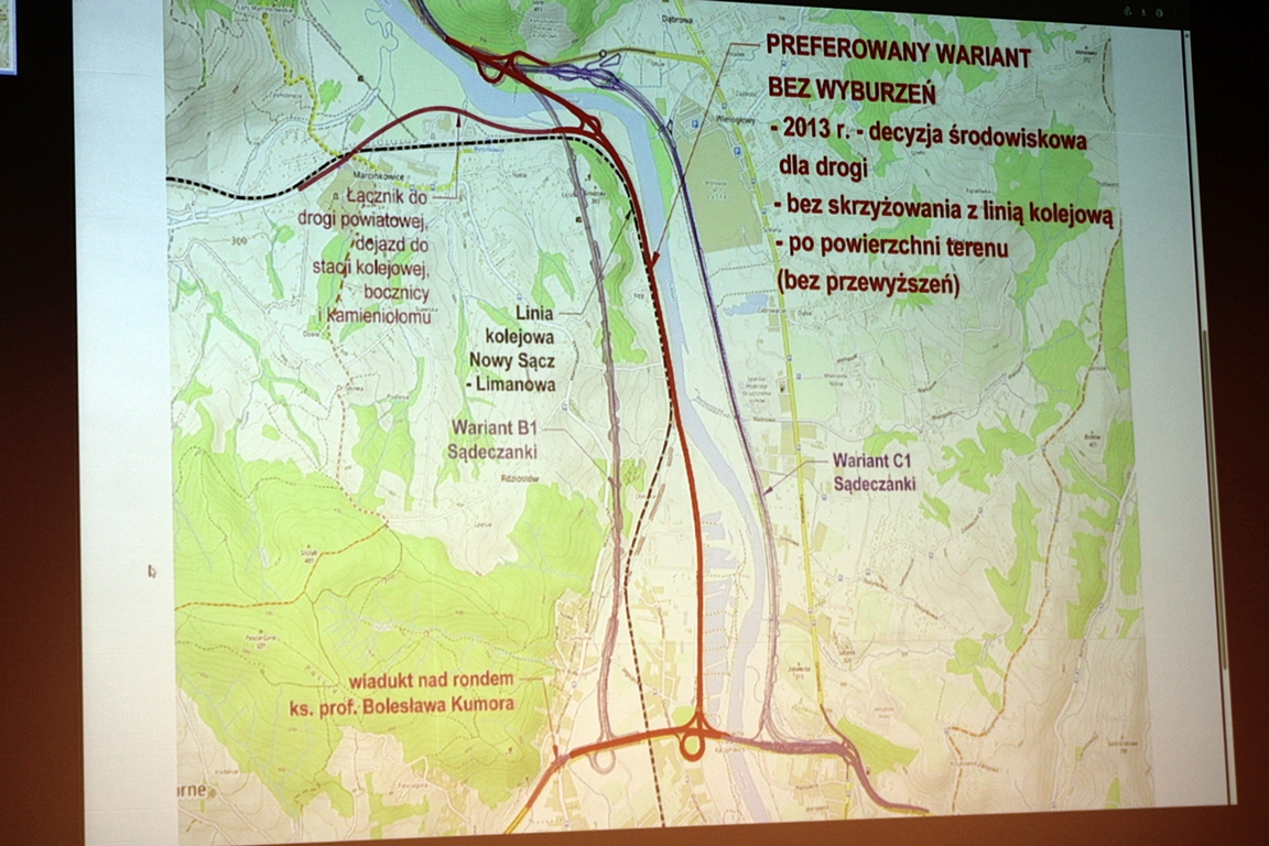 Generalna Dyrekcja Dróg Krajowych i Autostrad preferuje wzbudzający kontrowersje wariant C, dla którego inwestor ma decyzję środowiskową. Wariant ten zakłada przebieg „Sądeczanki” po nowosądeckiej stronie Dunajca. GDDKiA zapowiada, że wariant może zostać skorygowany tak, by było jak najmniej wyburzeń domów, ale mało realne wydaje się zbudowanie drogi po drugiej stronie rzeki.