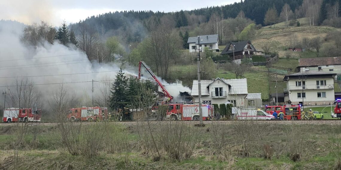 AKTUALNOŚCI Pożar domu w Muszynie. 10 zastępów strażackich gasi ogień [ZDJĘCIA] [WIDEO] 20 kwietnia 2026